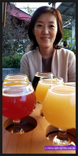웨이츄리스에게 추천받아 주문한 샘플러~ 나의 favorite은 커피와 메이플시럽 향이 나는 흑맥주 ~